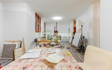 Tramite la scala posta nella zona giorno accediamo al piano interrato costituito da un secondo soggiorno, servizio, camera e uno studio.