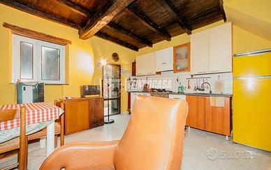 Immagina di varcare la porta d'ingresso al piano terra di un'abitazione che ti accoglie con il calore di un caminetto e un soggiorno con cucina a vista ed un bagno finestrato, dotato di una comoda vasca.