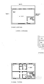 * Piano Terra: ampio trilocale con ingresso indipendente, zona giorno luminosa, due camere e bagno; una scala interna conduce alla cantina di pari metratura, ideale come taverna o locale accessorio.