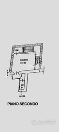 Al secondo piano troviamo una spaziosa camera matrimoniale con bagno privato e ripostiglio.