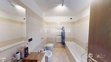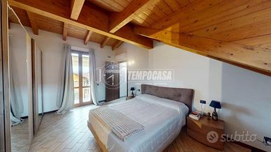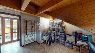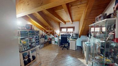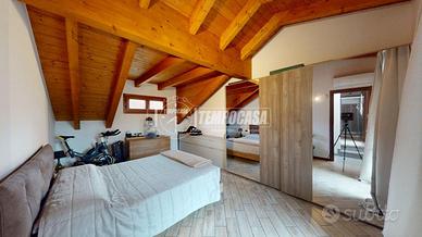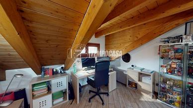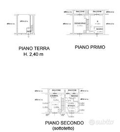 DESCRIZIONE INTERNA. L'immobile è disposto su più livelli. Al PIANO TERRA troviamo l'ingresso e la porta interna che ci conduce al comodo box di 22 mq. Salendo al PRIMO PIANO invece entriamo nel comodo soggiorno, spazio ben studiato da sfruttare per rilassarsi in famiglia. Questo ambiente avendo una doppia esposizione (Est-Ovest) è sempre illuminato da luce naturale. Altra caratteristica è l'accesso al primo balcone della casa. Proseguendo troviamo il primo bagno, dotato di vasca, e la cucina abitabile. Questo spazio è stato molto ben arredato e ha anch'esso accesso al balcone. Al SECONDO PIANO troviamo la zona notte, caratteristica di questo piano sono sicuramente le travi a vista. Qui troviamo l'ampia camera matrimoniale, dotata di un accesso al secondo balcone della casa, il secondo bagno con doccia e un ulteriore stanza da poter utilizzare come cameretta o come studio.