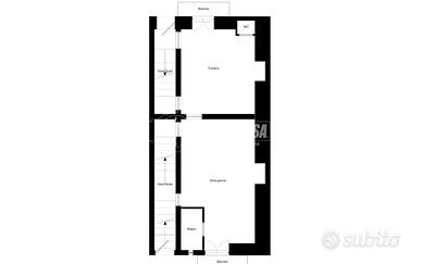 Al primo piano, di circa 62 mq oltre 16 mq di vano scala, troviamo due ambienti principali: una stanza più ampia, con ingresso da via Matteotti, dotata di bagno con vasca e balcone privato, e una seconda stanza, con ingresso da via Laruccia, anch'essa servita da un proprio wc e balcone. Le due stanze, pur avendo accessi indipendenti, sono collegate internamente, offrendo una grande versatilità nella distribuzione degli spazi.