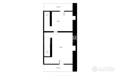 Il secondo piano, di circa 60 mq, ospita due soffitte, entrambe con tetto mansardato in legno. Ognuna delle due soffitte ha accesso esclusivo a un terrazzino privato di circa 9 mq: una con affaccio su via Laruccia, l'altra su via Matteotti.