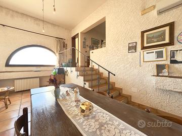 Al piano secondo, tre camere da letto, tutte matrimoniali, e due ulteriori bagni, di cui uno in camera, rendono quest'abitazione versatile ai massimi livelli. Anche qui, troviamo un affascinante terrazzo a livello, accessibile sia dal salone, sia dalla camera da letto patronale. Inoltre, è presente un garage/deposito. La soluzione si presenta abitabile fin da subito, ma necessita di lavori di manutenzione della facciata esterna.