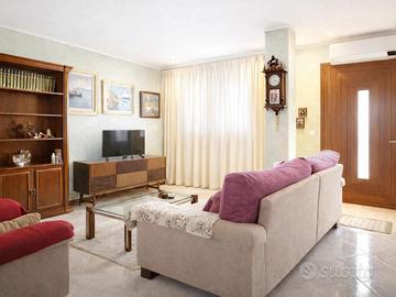 Spaziosa villa a schiera di testa di circa 200 mq in tranquilla e ricercata zona residenziale. Edificata negli anni '90, la proprietà si sviluppa su due livelli abitativi principali, oltre a soffitta e taverna, offrendo ampi spazi funzionali per tutta la famiglia. Al piano terra un portico protegge l'ingresso principale che si apre sull'accogliente zona giorno, composta da un luminoso soggiorno, con zona relax e pranzo, collegato direttamente alla cucina abitabile con accesso diretto al giardino retrostante, ideale anche come ingresso secondario. La zona notte, al primo piano, comprende tre confortevoli camere da letto, una matrimoniale e due singole, tutte dotate di ampie terrazze. I bagni sono due, uno completo di vasca e finestrato di ben 7 mq, e l'altro di servizio. Ulteriore spazio è garantito da una versatile soffitta già suddivisa in stanze che possono essere usate come studio, ripostiglio o camera aggiuntiva, e al seminterrato una spaziosa ed attrezzata taverna con caratteristico camino a legna, perfetta per momenti conviviali e incontri familiari. A completare la proprietà una corte privata fronte e retro di circa 100 mq, un comodo garage, una pratica cantina e un'indispensabile lavanderia. La casa si presenta in ottimo stato di conservazione, pronta da abitare, ed è ideale per famiglie numerose grazie ai suoi spazi ampi e ben distribuiti. La posizione in zona residenziale garantisce tranquillità e privacy, con facile accesso a servizi, scuole e negozi. DA NON PERDERE !!!! Rif. 233138 Per maggiori informazioni visita www.grupposirio.com.