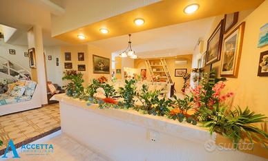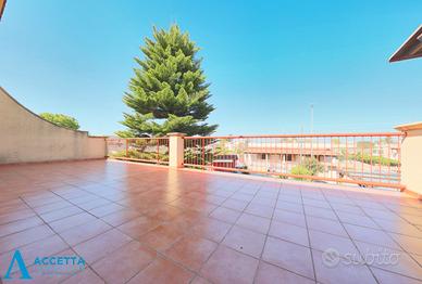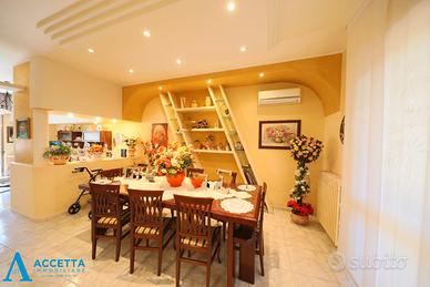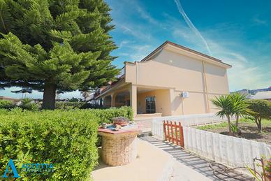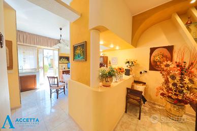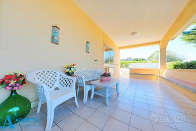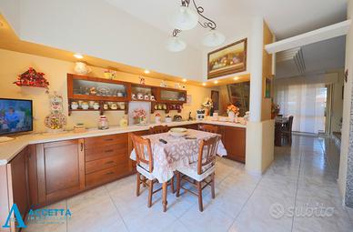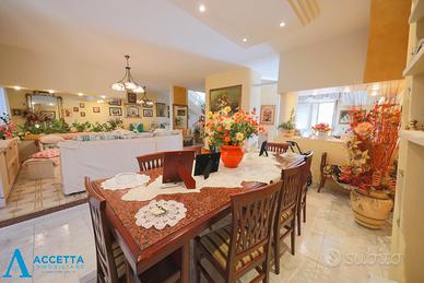 Proponiamo in vendita una spaziosa villa situata in Via Torpediniere, in una tranquilla e riservata zona residenziale di Lama, a Taranto, a breve distanza da Via Sciabelle e dal mare. La proprietà si sviluppa su due ampi livelli e si distingue per l'ottima distribuzione degli spazi interni, oltre che per la presenza di un giardino privato su tre lati, con accesso sia pedonale che carrabile. Al piano terra, un comodo e ampio portico conduce alla zono giorno open-space, suddivisa in zona salotto, zona pranzo e zona cucina, il tutto impreziosito da ricercate controsoffittature. Completa il piano un bagno con antibagno. Attraverso una scala interna dalla caratteristica architettura si accede al primo piano, dedicato alla zona notte, composta da tre camere da letto spaziose e ben illuminate, un bagno, un pratico ripostiglio, oltre a balcone e terrazza. La proprietà è completata da un garage al piano terra con camino e da un vano tecnico. Situata in un contesto residenziale tranquillo a breve distanza da servizi e dal mare, la villa rappresenta una soluzione ideale per chi è alla ricerca di ampie metrature, comfort e tranquillità. L'immobile è dotato di riscaldamento autonomo, climatizzatori e doppi infissi; rifiniture e impianti sono quelli originari, in discreto stato manutentivo.