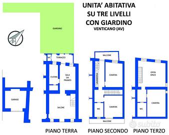 A poca distanza dal centro di Venticano (AV), in una zona tranquilla e ben collegata, proponiamo in vendita una splendida unità immobiliare sviluppata su tre livelli, con doppio ingresso, garage e ampio giardino privato. La casa, di circa 200 mq e completamente ristrutturata, offre spazi generosi e ambienti luminosi, così distribuiti: Piano terra - accogliente soggiorno - cucina - sala da pranzo - terrazzo con bagno - accesso diretto al giardino Piano primo - due camere da letto - bagno - lavanderia - balcone - terrazzo Piano secondo - grande open space - ulteriore camera da letto - bagno Il garage, di 17 mq, si affaccia sul fronte principale dell'edificio ed è dotato di saracinesca telecomandata, ideale per ospitare comodamente un'auto familiare. Il giardino, esteso per 259 mq, rappresenta un autentico valore aggiunto: uno spazio verde da vivere in ogni stagione, con accesso carrabile indipendente. Gli interni, completamente rinnovati, sono stati progettati per garantire comfort e funzionalità. Ogni piano dispone di videocitofono e sistema di videosorveglianza. Il riscaldamento autonomo di nuova generazione include termostufa e caldaia GPL, mentre l'acqua sanitaria è supportata anche dal solare termico installato sul tetto. Una soluzione ideale per famiglie numerose o per chi desidera ambienti ampi, moderni e un contesto di assoluta tranquillità. Virtual tour disponibile su richiesta.