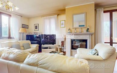 - Ampio e luminoso salone con camino e due accessi al giardino