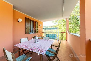 Completano la proprietà una terrazza arredabile, un solarium, un ampio garage, una cantina e un cortile ad uso esclusivo.