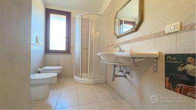 A completare la proprietà, il piano primo, adibito a bilocale indipendente, composto da zona living con terrazza di pertinenza esclusiva, disimpegno, bagno con doccia e camera matrimoniale con cabina armadio.