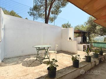 Il cortile di circa 2000 mq permette di godersi la tranquillità immersi nel verde tra ulivi e pini.