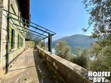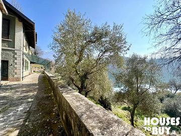Caratteristiche Pro: *Posizione unica e spettacolare, accesso direttamente al lago *Ampi spazi, terrazza, giardino e terreno *Villa su più piani con fantastica veranda sul lago La proprietà: si sviluppa in un'area di 6.110 m², comprende un fabbricato principale di 203 m² disposto su tre livelli (ristrutturato), una piccola dependance affianco con due camere da letto (al rustico), terreni con giardino, prato, uliveto con circa 40 piante e bosco. La villa: da Angolo Terme si imbocca via Bedosco per raggiungere il parcheggio che accoglie i visitatori del Lago Moro, da qui dall'accesso privato tramite la strada cementata (rifatta per diminuire la pendenza) si arriva a questa fantastica villa, già dalla discesa si intravede il lago e dal piccolo piazzale creato per lasciare l'auto si ha l'ingresso della casa. Un grazioso vialetto permette l'accesso alla veranda panoramica da cui in posizione dominante si ammira il rigoglioso giardino che costeggia il lago. Il fabbricato principale si sviluppa su tre livelli: *al piano terra troviamo un grande doppio vano con cucina abitabile e soggiorno, muri in pietra, vano scale con wc, locale cantina / sgombero a rustico adiacente; *al primo piano la zona notte con due camere da letto medie, una grande camera padronale con balcone panoramico, bagno con doccia; *al secondo livello un locale mansardato alto, travi a vista, un magnifico ambiente dove creare una ulteriore camera da letto o una sala hobby / cinema. La villa degli anni 1940 si trova in ottime condizioni strutturali, risulta abitabile da subito, sono stati eseguiti dei lavori di rinnovamento nel tempo per manutenzione, pavimenti in sasso ricoperti da resina, bellissime e particolari marmette al primo piano che raccontano la storia di questa villa, gli impianti sono tutti funzionanti rifatti di recente, piccola dependance a rustico e da sistemare su due piani con due camere, sul retro una cantina molto fresca. La parte esterna gode di ottima luminosità e di