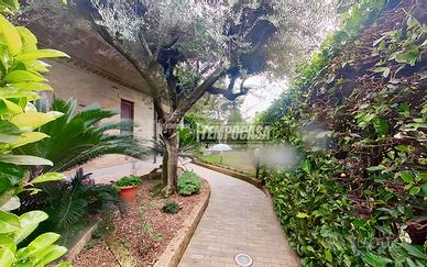 L'ingresso principale si apre su una spaziosa zona giorno al piano terra, dove la cucina a vista si integra perfettamente con il soggiorno, creando un ambiente conviviale e accogliente, perfetto per accogliere amici e familiari. La pavimentazione in ceramica, gli infissi in legno con doppio vetro e le ampie superfici finestrate garantiscono una luminosità naturale costante durante tutta la giornata. Dal soggiorno si accede direttamente al giardino privato di circa 300 mq, che circonda l'abitazione su più lati, offrendo uno spazio esterno ideale per il relax, i giochi dei bambini o per pranzi e cene all'aperto nella bella stagione.