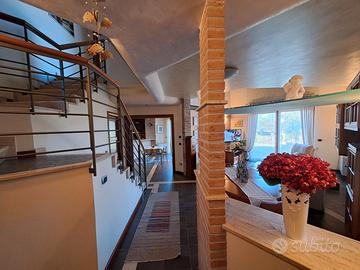 Villa indipendente, in Venafro località Madonnella, immersa in un ampio lotto di terreno di 3650 mq, ideale per chi desidera vivere a contatto con la natura senza rinunciare al confort. Sviluppata su 2 livelli sfalsati + seminterrato. La villa si contraddistingue per ambienti spaziosi, le ottime finiture e le tecnologie impiantistiche utilizzate. Nella zona giorno all' ingresso si viene accolti in un grande ambiente open space con ampio soggiorno, zona tinello con cucina e ripostiglio, camino bifacciale soggiorno/tinello, porta scorrevole a due ante per comunicazione tra soggiorno e tinello, scala a vista, bagno di servizio, disimpegno di collegamento con la zona garage e locali d'uso, con ampie finestrature che garantiscono una eccezionale luminosità naturale ed un continuo dialogo con il verde circostante. Nella zona notte troviamo tre camere da letto, una padronale in suite con bagno privato e guardaroba, la seconda con grandezza matrimoniale soppalcabile, seconda e terza con bagno attiguo. Ampio studio/palestra con balconata a vista sul soggiorno e camino. Al piano terra troviamo un ampio garage con accesso all'abitazione ed ad un seminterrato con locali d'uso. Gli spazi esterni si sviluppano in un ampio giardino, che ci accoglie nell'abitazione che la avvolge sui tre lati liberi e rappresenta un'oasi privata perfetta per i momenti di relax e convivialità. il porticato e terrazzo esterni sono l'ideale per pranzi all'aperto, letture o semplicemente per godere della tranquillità della zona. Abitazione mq 215, locali d'uso mq 164, balconi mq 73, terrazzi e camminamenti esterni mq 533, giardino mq 2887, camere 3, locali abitativi 5, bagni 3. Impianto fotovoltaico, impianto di climatizzazione caldo/freddo + riscaldamento autonomo a gas con ventilconvettori in ogni ambiente, avvolgibili elettrificati, impianto di allarme. Pavimenti in gres, in parquet zona suite e studio. Balconate e vialetti in porfido, serramenti in legno-alluminio. Camino termo ventilato bifacciale