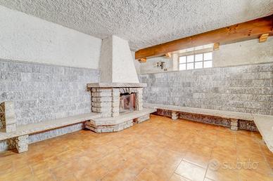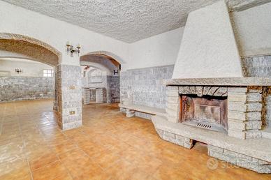 Splendida taverna con finiture in marmo, pavimento in cotto e caminetto;
