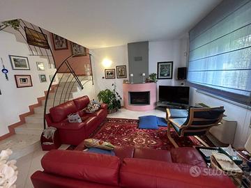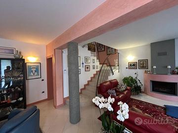Rif: Via Caretti (193068105) - Ca' Doro in posizione interna e tranquilla immersa nel verde, splendida Villa di recente costruzione in perfetto stato di manutenzione, libera su 4 lati composta da 2 unità abitative indipendenti e ampio giardino. L'unità abitativa principale si compone al piano terra di un ingresso indipendente con ampia cucina abitabile, salone con camino, bagno finestrato e ripostiglio, garage di 50 mq. comunicante (ad oggi adibito a taverna) e vano tecnico. Al piano primo 3 camere da letto matrimoniali ampio bagno e balcone. La seconda unità si compone al piano terra da un ingresso su ampia zona giorno con angolo cottura, ripostiglio e bagno finestrato, al piano primo una camera da letto matrimoniale, un bagno finestrato e un balcone. Scoperto esclusivo di 700 mq. c in ampia parte a giardino con 3 posti auto. Riscaldamento autonomo. Ottime rifiniture, climatizzata. (IDEALE COME SOLUZIONE GENITORI/FIGLI) - Classe: F - IPE: 175.00 kWh/mq anno