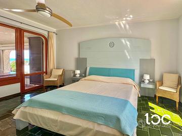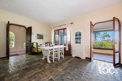 La villa è composta da un ampio soggiorno con affaccio sulla veranda vista mare, cucina separata, quattro camere matrimoniali tutte en - suite (tre delle quali con vista mare) garage e circa 1.200mq di giardino circostante.