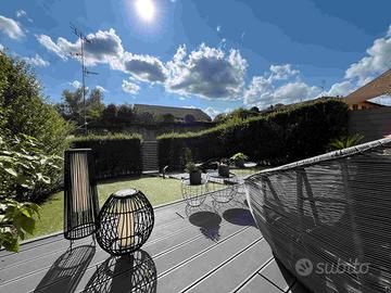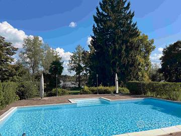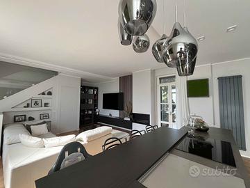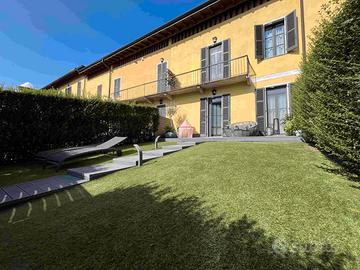 Fronte lago, con porticciolo privato, parco e piscina, completamente ristrutturata e con finiture di altissimo livello, villetta a schiera, disposta su tre livelli, composta da soggiorno con cucina a vista, disimpegno, tre bagni, camera matrimoniale, cameretta singola e vano hobby mansardato.