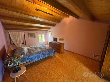 La zona notte, situata al primo piano, accoglie tre ampie camere da letto, di cui una con cabina armadio. Tutte sono caratterizzate da travi a vista e pavimenti in legno, che donano calore e intimità agli ambienti, mantenendo viva l'anima originaria del casale. Le finestre, restaurate nel rispetto dello stile d'epoca e dotate di vetrocamera, incorniciano scorci suggestivi sul paesaggio circostante.
