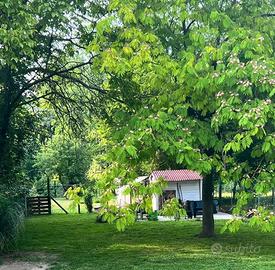 o Area verde sul retro, riservata e suggestiva, con vista diretta sul fiume e sull'argine, ideale per momenti di relax all'aperto.