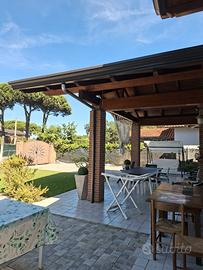 "Scopri questa affascinante casa indipendente su due livelli, situata a soli 400 metri dalla spiaggia. Con una superficie commerciale di 100 m² e un ampio giardino di 600 m², questa proprietà è ideale per chi cerca spazio e comfort. Al piano terra, un luminoso salone accoglie gli ospiti, mentre la cucina è perfetta per preparare deliziosi pasti. Sempre al primo terra, trovi tre camere da letto, e un bagno bagni al P. Primo si trova una camera mansardata ed un ampio balcone che garantiscono comodità per tutta la famiglia. Il porticato di 12 mq al piano terra è l'ideale per godersi momenti di relax all'aperto, mentre il giardino, in parte pavimentato e in parte verde, offre molteplici possibilità per il tempo libero. Inoltre, la proprietà include un fabbricato adibito a bagno esterno e ripostiglio con adiacente un forno e barbecue. Avente accesso diretto dalla strada provinciale e ingresso pedonale dal viale del residence, questa casa è perfetta per chi desidera vivere vicino al mare senza rinunciare alla privacy. Non perdere l'occasione di visitarla!"