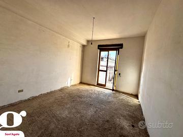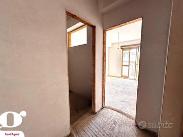 Proseguendo al secondo piano, si trova un ulteriore appartamento attualmente da rifinire, composto da cinque vani. Un vantaggio tecnico di rilievo per questo livello è rappresentato dalla presenza degli impianti già interamente realizzati, dettaglio che semplifica il completamento dell'unità. Anche questo piano è servito da balconi su entrambi i fronti, mantenendo la coerenza architettonica e la luminosità che caratterizzano i livelli superiori.