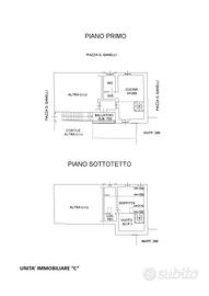 appartamento su due livelli composto da un locale e sevizi al piano primo; un locale e servizi al piano sottotetto attualmente locato. Composto da ingresso, soggiorno con angolo cottura e servizi (bagno / ripostiglio), un locale e 2 ripostigli al piano sottotetto. L'ingresso all'immobile avviene da una scala esterna in comune con l'unità immobiliare "C";