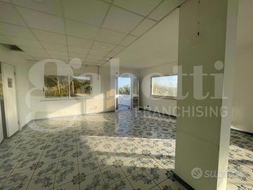 LOCAZIONE LOCALE COMMERCIALE a ridosso della spiaggia di Sant'Agostino, una delle zone a maggior vocazione turistica di Gaeta, lungo una strada principale. Il fabbricato si sviluppa su due livelli. Al piano rialzato troviamo un ampio locale commerciale, con un gradevole scorcio di vista mare, da sempre adibito a ristorante, con una superficie di 223 mq , tra sala, cucina e servizi. Al piano sottostante, troviamo due locali deposito di complessivi mq. 110 mq. Completa la proprietà uno spazio esterno di circa 900 mq., utilizzato come parcheggio.