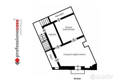 L'unità abitativa, con accesso indipendente al civico 45, si sviluppa su un accogliente ingresso che conduce alla zona living con angolo cottura, bagno e balconcino con affaccio diretto su Via Diaz. La zona notte è composta da una camera da letto illuminata da lucernario, completa di pratico ripostiglio.
