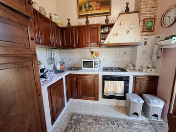 L'appartamento al primo piano invece si compone di ingresso, cucina, zona pranzo con camino, ampio salone con camino con affascinanti dettagli architettonici, tre camere matrimoniali e doppi servizi.