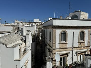 La palazzina del 1799, è molto ariosa ed è affacciata sulla Piazzetta. E' posta su due livelli, per un totale di mq. 85 ca., oltre il terrazzo sovrastante di mq. 45 ca. L'ingresso della palazzina, attraverso il portoncino decorato, evidenzia la tipicità della costruzione, sottoposta al vincolo della Soprintendenza beni archeologici. Salendo da una scala in pietra giungiamo al primo piano, dove ci accoglie un grande ambiente caratterizzato dal susseguirsi di volte a crociera, reso luminoso dal balcone e dalla finestra affacciati su Piazzetta Don Bosco; un secondo ambiente completa il primo piano. Il secondo piano, anch'esso affacciato su piazzetta Don Bosco, è caratterizzato da un grande camino. L'ultimo tratto della scala ci porta sul terrazzo che ha una piacevolissima vista che spazia sui tetti di Martina Franca.