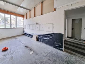 Dalle scale interne si accede al piano primo adibito ad uffici, servizi e spogliatoi per il personale.