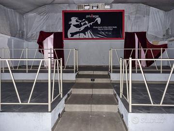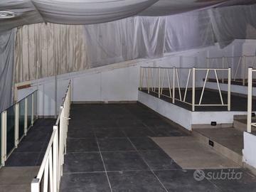 Il piano seminterrato è costituito da una zona ,attualmente ,adibita a pista da ballo, da una zona bar oltre servizi. Il piano terra è composto da un ampio ingresso oltre solaio a sbalzo prospiciente sulla sala del piano seminterrato.