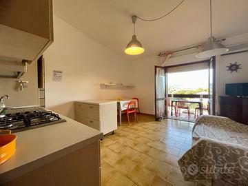 La zona giorno è luminosa e funzionale, composta da un soggiorno con cucina a vista che si affaccia su un balcone panoramico: uno spazio perfetto per colazioni all'aperto, momenti di relax o aperitivi con vista.