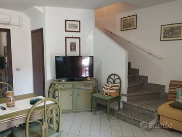 Villino a schiera a Stintino, Disposto su due livelli e composto da piano terra con Ingresso con ampio patio all'aperto abitabile, soggiorno, cucina, , 1° bagno con doccia, giardino interno. 1° piano una camera da letto matrimoniale, 1 cameretta con 3 posti letto, 2° bagno con doccia, ampio terrazzo. Dotato di aria condizionata. Ampio parcheggio davanti alla casa.