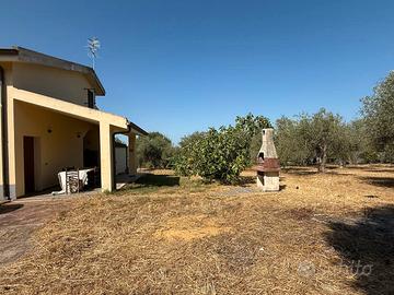 La proprietà è circondata dal terreno di ca. 3.100mq, in cui sono presenti 46 alberi d'ulivo ed altri alberi da frutto.