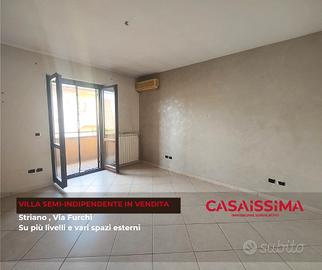 Striano - Via Furchi | Ampia villa semi indipendente con spazi esterni e ottima esposizione In contesto tranquillo ma strategicamente collegato, a pochi minuti dall'uscita autostradale di Palma Campania e nelle immediate vicinanze di San Giuseppe Vesuviano e Poggiomarino, proponiamo in vendita una spaziosa villa semi indipendente, ideale per chi desidera ampi ambienti e comodità negli spostamenti. La proprietà, libera su tre lati e con affaccio fronte strada, dispone di ingresso autonomo sia pedonale che carrabile, numerosi posti auto e spazio esterno che abbraccia l'abitazione, perfetto per vivere momenti all'aperto in totale comfort. L'esposizione a sud garantisce luminosità naturale durante tutta la giornata, rendendo gli ambienti caldi e accoglienti. La villa si sviluppa su quattro livelli di circa 80 mq ciascuno: Al piano seminterrato troviamo una comoda taverna con ingresso indipendente, soluzione versatile ideale come zona relax, studio o spazio per ospiti. Il piano rialzato ospita la zona giorno composta da cucina, ampio salone, bagno e terrazzi che ampliano la vivibilità degli spazi interni. La zona notte è composta da tre camere da letto e bagno, ben distribuite e funzionali. Completa la proprietà un sottotetto ampio e ben fruibile, perfetto come studio, area hobby o ulteriore ambiente multifunzionale. L'immobile si presenta in buone condizioni generali ed è pronto per essere abitato. Soluzione ideale per famiglie che cercano spazio, luce e una posizione comoda senza rinunciare alla tranquillità. Prezzo richiesto: € 370.000,00