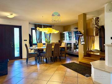 In ottimo contesto residenziale, rifinita e suggestiva villa accostata di importante metratura, svolta su tre livelli così accuratamente composta: