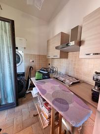 P. Rialzato: ingresso, soggiorno con cucinotto a vista, camera, bagno e ampio portico angolare.