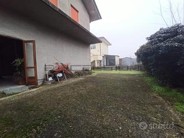 L'immobile è disposto su due livelli ed è così suddiviso: il piano terra attualmente adibito a laboratorio con bagni e totalmente indipendente, ove si trovano anche due garage e una cantina. Il piano superiore, al grezzo, è predisposto per la realizzazione di due appartamenti trilocali o quadrlocali, oppure per un'unica abitazione su una superficie di circa 200mq. La proprietà comprende anche un ampio giardino di circa 300 mq.
