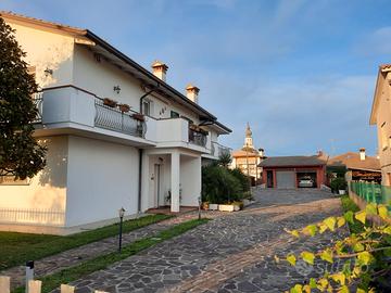 Tapogliano, via Bersaglieri, ampia e bellissima villa indipendente su lotto di circa 880 mq. Si sviluppa su due livelli e, al piano terra subito in prossimità dell'ingresso, spicca una grande e stupenda taverna con caminetto, arredata con stile. Sempre al piano terra un bagno comodo, finestrato e con doccia, la lavanderia, la centrale termica e un'ampia stanza utilizzabile in diversi modi, come palestra ma all'occorrenza anche come stanza da letto. Al primo piano ampia e luminosissima zona giorno (tutta esposta a sud /ovest) con cucina e sala da pranzo open space e comodo salotto separato, tre camere matrimoniali, ampio ripostiglio/studio, grande bagno e terrazza. Infine, esternamente, doppio garage e ampio locale cantina. La casa, in origine degli anni '70, è stata completamente ristrutturata nei primi anni 2000, ha riscaldamento a pavimento (al primo piano) climatizzatore e allarme. Nel 2014 sono state riviste gran parte delle finiture interne, sia del piano terra che del primo piano, per cui si presenta in maniera impeccabile, accogliente e soprattutto molto elegante. Ideale per chi cerca un'abitazione dagli spazi ampi e comodi ma soprattutto per chi desidera davvero una bellissima casa!!!