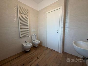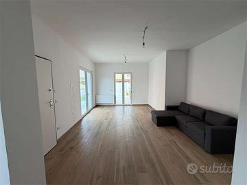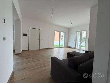 E' dotata di pannelli solari, pompa di calore, solare termico, infissi in triplo vetro, impianti nuovi certificati, pavimento uniforme, porta blindata, doppio ingresso (carrabile e pedonale).