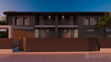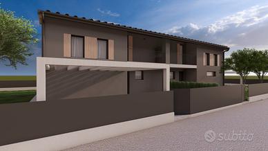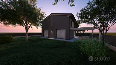 Fuori dal centro urbano, su strada secondaria, proponiamo ultima porzione di villa bifamiliare di nuova costruzione in classe A4. Ogni villetta si compone al piano terra di una zona giorno open space con ampie vetrate di oltre 55 mq calpestabili con affaccio sul giardino di quasi 400 mq, bagno/lavanderia e portico di 19 mq; al piano primo invece troviamo 4 camere matrimoniali ed ulteriore bagno. Tutti gli spazi interni sono personalizzabili in base alle esigenze dell'acquirente, come le stesse finiture. La casa viene consegnata con riscaldamento a pavimento, predisposizione vmc puntuale ed impianto fotovoltaico da 6 kw con inverter.