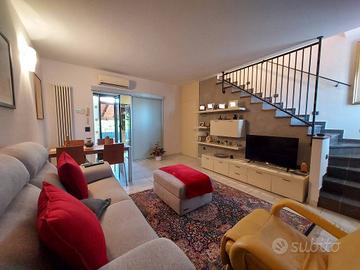 Rif: TAVULLIA Villetta a Schiera Recente, ampio scoper (193153642) - TAVULLIA, adiacente a tutti i servizi. VILLETTA A SCHIERA di testa. Recente, curata e rifinita nei dettagli, con ampio scoperto esclusivo. Panoramica con vista mare. PIANO RIALZATO: Ingresso, ampio soggiorno, cucina abitabile, due ampi terrazzi e collegamento diretto allo scoperto esclusivo in parte pavimentato e con pergolato, ideale per trascorrere all'aperto le belle giornate. PRIMO PIANO: due comode camere da letto, bagno finestrato, ripostiglio, 2 terrazzi. PIANO SEMINTERRATO: tutto alto e con uscita sullo scoperto quindi seminterrato solo da un lato. Camera da letto, bagno con lavanderia, ulteriore stanza con uscita sullo scoperto utilizzabbile come soggiorno, tavernetta, ripostiglio. Scala ampia e comoda con montascale che collega tutti e tre i piani. RIFINITURE: eccellenti, curata in tutti i dettagli e con tutti i conforts. Pannelli solari, infissi in alluminio con doppio vetro, zanzariere, antifurto, inferriate, aria condizionata, aspirazione centralizzata e tanto altro..Luminosa con tripla esposizione. SCOPERTO su tutti e tre i lati, accessibile con auto con 2 pergolati uno utilizzato per posto auto coperto. Contesto tranquillo adiacete a tutti i servizi, supermercato a poche centinaia di metri. Mare di Pesaro o Cattolica raggiungibile in 10 minuti. Classe E, 96kwh/mq/anno. Per informazioni o visite: PESARO CASE, siamo a Pesaro in Via Vincenzo Rossi, 2 e Via Vincenzo Rossi, 5. Tel: -, cell: Diego, Mauro oppure Luca - Classe: E - IPE: 96.00 kWh/mq anno