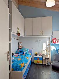 A 10 km dalla base USAF di Aviano, porzione di bifamiliare collegata dalla sola grande copertura dei 4 posti auto. Autonomia e privacy garantite da alto muro a confine. Zona giorno al piano terra con grande soggiorno e vetrata su portico, cucina separata, ripostiglio, bagno, lavanderia/CT. Al piano primo: camera matrimoniale, due camere singole e bagno con doppio accesso. Giardino perimetrale ampio con spazi organizzati. Posizione silenziosa e servita.