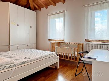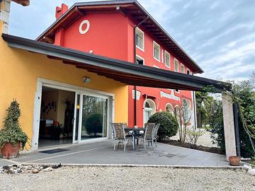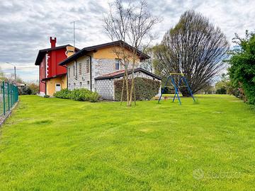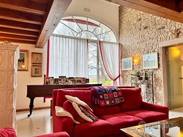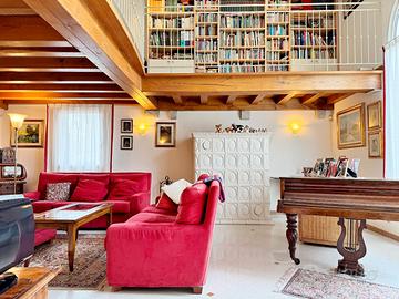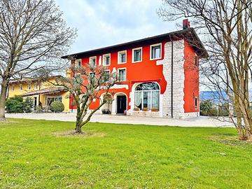 Proponiamo in vendita a Sacile una splendida villa con parco privato e annessa dependance, finiture di pregio. Il corpo principale si distingue per l'elegante facciata, impreziosita da ampie vetrate ad arco. Si sviluppa su tre livelli: al pian terreno ingresso, ampio salone soppalcato con stube, travi a vista e muro in pietra, cucina abitabile, pranzo, ripostiglio, bagno e c. t. /lavanderia; al primo piano disimpegno, ampia camera padronale con cabina armadio, bagno en suite e terrazzo privato, camera singola e bagno; al secondo piano due camere da letto e accesso all'ampia soffitta abitabile. La taverna unisce il corpo principale alla dependance e fornisce uno spazio molto utile: gode di una seconda cucina con forno a legna da incasso e camino in marmo, e di ampie vetrate scorrevoli che la collegano al portico esterno e al giardino. La dependance offre versatilità su due livelli: al pian terreno una stanza libera polifunzionale con accesso al box doppio e alla cantina, al primo piano un sala luminosa con travi a vista, perfetta per uno studio professionale o come suite per gli ospiti. All'esterno, un ampio parco finemente piantumato circonda la proprietà e garantisce assoluta privacy, ideale per l'eventuale inserimento di una piscina.