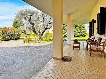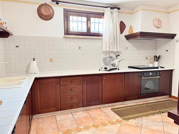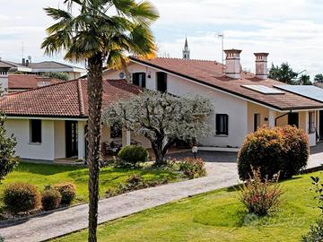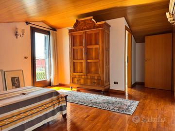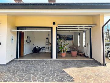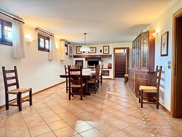 Splendida villa con giardino privato in un esclusivo lotto di sole 4 unità. L'ingresso ti accoglie in un salone di quasi 60 mq con pavimento in granito a macchia aperta e camino a legna, da cui è possibile accedere alla cucina abitabile con porticato esterno, alla dispensa e ad un primo bagno. Un comodo disimpegno porta alla zona notte, dove troviamo 2 bagni, 3 camere da letto di generose metrature, di cui la padronale con cabina armadio, terrazzo e bagno en suite. Dal soggiorno si accede anche a una zona studio comunicante con la lavanderia adiacente e con il giardino. Al piano seminterrato troviamo una taverna di oltre 50 mq con cucina autonoma, camino e forno a legna, un bagno e 2 cantine. Al piano sottotetto un'ampia mansarda con due depositi, due terrazze, una stanza con parete attrezzata per una cucina e camera da letto con bagno. Giardino piantumato e curato, pannelli fotovoltaici e solari, pozzo artesiano, struttura antisismica in cemento armato, garage doppio pavimentato e finestrato.