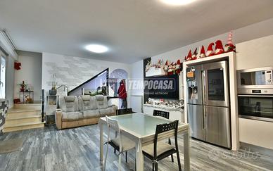 Al piano terra troviamo un grande soggiorno-cucina dove si può accedere direttamente al box auto, ideale anche per deposito materiale.