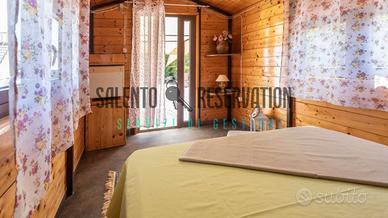 Tenuta Armony - Salento Reservation è composta da un ampio soggiorno climatizzato con un divano letto matrimoniale, angolo cucina con tavolo e sedie da pranzo e tv, un salone arredato con zona relax e due divano letto matrimoniali, due camere da letto matrimoniali di cui una esterna alla struttura principale climatizzata in una baita in legno, una camere da letto doppia, offre inoltre due bagni con box doccia e lavatrice, una veranda attrezzata coperta, con mobili da giardino e barbecue a legna, un ampio giardino attrezzato con zona pranzo coperta dotata di camino, un'ulteriore zona pranzo o relax- lettura, area giochi attrezzata per i più piccoli e una una comodissima doccia esterna.