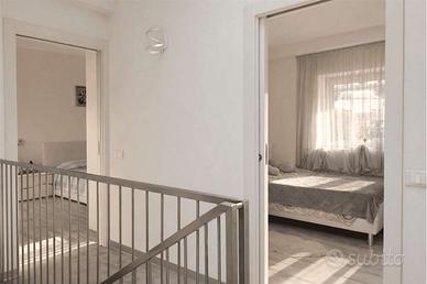 Limmobile si sviluppa su più livelli. Al piano terra troviamo lingresso, un bagno finestrato e unampia zona giorno open space con soggiorno-cucina e un balcone. Al primo piano si sviluppa la zona notte composta da tre camere da letto, un bagno finestrato e il balcone. Al piano interrato sono presenti un bagno/lavanderia, un locale attualmente adibito a palestra (ideale anche come taverna o studio) e un garage con uscita diretta sul cortile.
